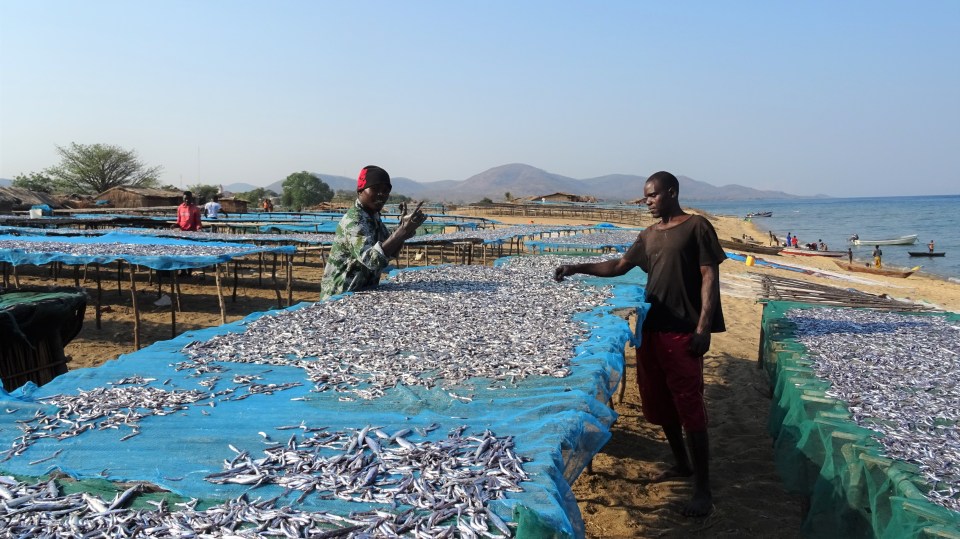 Fishermen with the morning catch on the shores of Lake Niassa