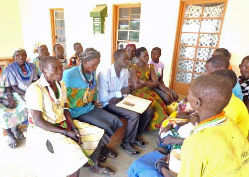 A workshop in East Ruwenzori, against the backdrop of the Ruwenzori mountains